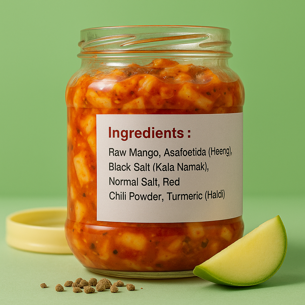 Our Mango (Heeng) Pickle from 90's Ka Pitaara is expertly handcrafted using traditional methods without any machinery. This pure, homemade pickle contains no chemicals or preservatives, ensuring a natural and authentic taste. We use only the highest quality heeng and carefully selected powdered spices to create a balanced and flavorful condiment that complements any meal. Perfect for those who value genuine, artisanal pickles made with expertise and care.